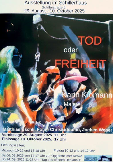 Fr 29.08.2025 bis einschließlich 10.10.2025 Bilder zu "Tod oder Freiheit" (Zitat aus Friedrich Schillers Drama "Die Räuber") von Karin Klomann