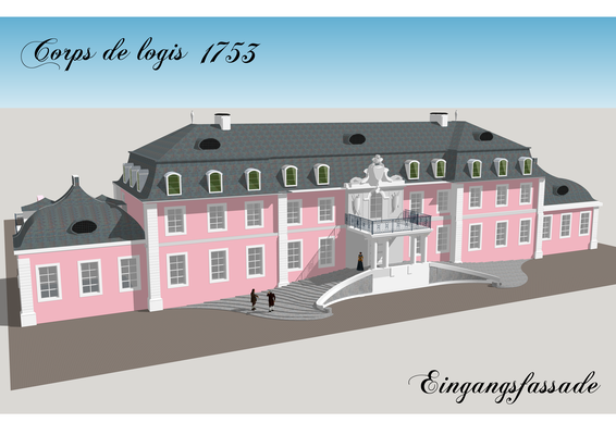 1751 kaufte nun Pfalzgraf Friedrich Michael von Zweibrücken (1724-1767) den Sommersitz und baute die kleine Residenz zu einem großen mehrgeschoßigen Schloss mit einer erweiterten Schlossanlage aus. Dazu gehörten verschiedene Anlagen des Schlossgartens mit Laubengängen, Brunnen und Statuen, eine Orangerie mit Pflanzgarten und Gärtnerwohnungen, ein Badehaus und eine neue Chinoise. Ein großes Wasserbassin wurde angelegt, von dem ein mit Booten beschiffbarer Kanal in Richtung Rhein führte. In einer Menagerie wurden Schau- und Nutztiere gehalten. Als Architekt war Nicolas de Pigage tätig.