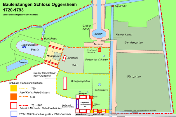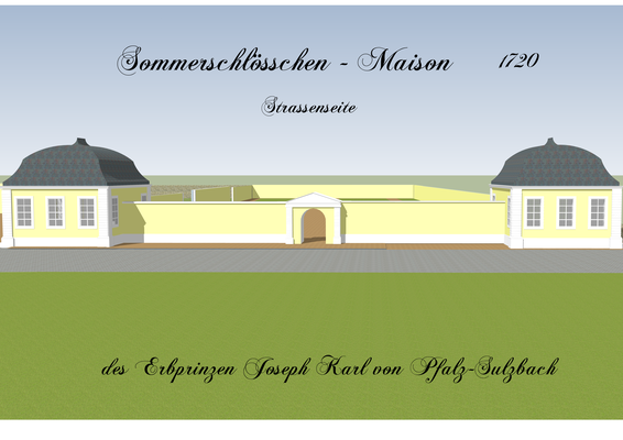 1720 begann Joseph Karl Emanuel von Sulzbach, Erbprinz der Kurpfalz (1694-1729), in Oggersheim mit dem Bau des kleinen Sommerschlösschens. Es entstanden zwei einstöckige Gebäude (Pavillons) an der Mannheimer Straße mit einer Verbindungsmauer und einem Garten. Um 1728 kam eine dritter Pavillon und ein Turm hinzu.